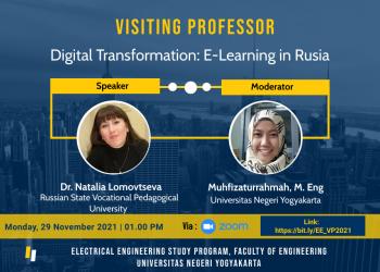 Prodi S1 Teknik Elektro, FT UNY telah melakukan Kerjasama dengan universitas di luar negeri diantaranya adalah Kerjasama dengan Universitas Teknologi Petronas Malaysia. Pada bulan Desember 2020 kemarin Prodi S1 Teknik Elektro telah menyelenggarakan kegiatan Visiting Professor dari ....